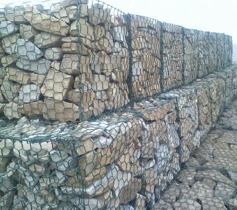 格賓籠是由金屬線材編織的角形網(wǎng)(六角網(wǎng))制成的網(wǎng)箱。石籠網(wǎng)由高抗腐蝕、高強(qiáng)度、具有延展性的低碳鋼絲或者包覆PVC的以上鋼絲運(yùn)用機(jī)械編織而成,運(yùn)用該網(wǎng)制造而成的箱型結(jié)構(gòu)就是石籠。